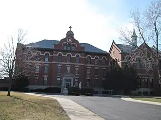 The Passionist Fathers Monastery is a historic monastery at 5700 N. Harlem Avenue in the Norwood Park neighborhood of Chicago, Illinois. The monastery was built in 1910 for the Passionists, an order of Roman Catholic monks which believed in austere living and hosting spiritual retreats. Architect Joseph Molitor, who also designed several churches for the Archdiocese of Chicago in the early twentieth century, designed the monastery. The building incorporates elements of Classical Revival, Baroque Revival, and Romanesque Revival architecture. The building's most prominent Classical Revival element its main entrance, which includes a balustrade and detailed pediment. Its Baroque influence is apparent in the Dutch gable above the main entrance, while its rounded arched windows and corbeling come from the Romanesque style.[2]