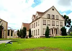 Passionist Monasteries are correctly referred to as "Retreats".[4] The members of the congregation are not allowed to possess land, and the congregation collectively can only own the community house and a bit of land attached to it. They rely completely on their own labor and on contributions from the faithful to maintain themselves financially. The habit worn by members is a black rough woolen tunic and mantle bearing the words "Jesu XPI Passio", meaning "Passion of Jesus Christ", and the congregation was historically discalced, wearing sandals rather than shoes.