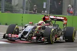 On 29 November 2013, Maldonado was signed by the Lotus F1 team, to partner Romain Grosjean in 2014.[57] He drove with number 13,[58] which was barely used in Formula One before.[59] Maldonado's engineer was Mark Slade, who previously engineered for Kimi Räikkönen.