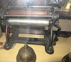 - Opposed and counter-rotating rollers with a variable gap through which pastry can be worked and reduced in thickness for commercial production. A small version is used domestically for pasta production.
