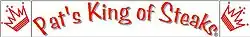 Pat's King of Steaks (also known as Pat's Steaks) is a restaurant that specializes in cheesesteaks. It is located at the intersection of South 9th Street, Wharton Street and East Passyunk Avenue in the Passyunk Square section of South Philadelphia, directly across the street from rival Geno's Steaks.