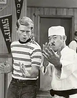 Morita's first movie roles were as a henchman in Thoroughly Modern Millie (1967) and a similar role in The Shakiest Gun in the West (1968), starring Don Knotts. He also appeared in the 4th episode of the 1st season of The Courtship of Eddie's Father. Morita had other notable recurring television roles on Sanford and Son (1974–1976) as Ah Chew, a good-natured friend of Lamont Sanford, and as South Korean Army Captain Sam Pak on the sitcom M*A*S*H (1973, 1974).[22] He was also cast as Rear Admiral Ryunosuke Kusaka in the war film Midway (1976).