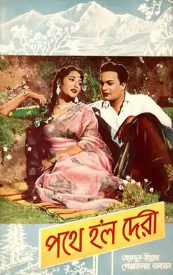 Pathey Holo Deri is a 1957 Bengali film directed by Agradoot.[6][7] The film's music was composed by Robin Chatterjee. The film stars Uttam Kumar, and Suchitra Sen[8] in leading role and others artists like Shishir Batabyal, Anil Bhattacharya, Mihir Bhattacharya, Chhabi Biswas, Bharati Devi, Chandrabati Devi, Jahar Ganguli, Anup Kumar, Shyam Laha, Gopal Majumdar, Chitra Mandal, Sova Sen, and Kamala Mukherjee in the supporting roles. This is the first ever color Bengali film in history. The film became a huge success at the box office.