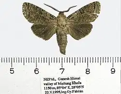 - ^ a b Ivinskis, Povilas; Rimsaite, Jolanta; Saldaitis, Aidas & Yakovlev, Roman (2012). "Description of two new species of Cossidae (Lepidoptera) from China". ZooKeys. 192: 35–49. doi:10.3897/zookeys.192.2611. PMC 3349061.