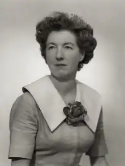 Chosen to represent the party in the West Belfast constituency for the 1955 general election, she captured the seat from incumbent Jack Beattie and went on to successfully defend it at the 1959 election before retiring from politics.[1] She made a surprise comeback in the 1970 general election as the Conservative Party candidate in Wandsworth Central, although she failed to win the seat.[1] She was also a founding member of the Westminster women's Orange Lodge.[2]