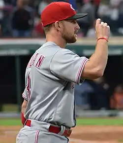 Kivlehan made the Reds' Opening Day roster in 2017.[17] He was outrighted to Triple-A on November 3, 2017, and elected free agency on November 6. On November 18, Kivlehan signed a minor league contract with the Reds that included an invitation to spring training.[18] He was released from the organization in early May 2018.[19]