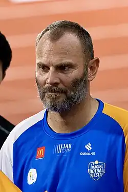Between 1997 and 1998, Berger boycotted the Czech national team due to a conflict with head coach Dušan Uhrin.[62] He returned to the national set-up after a 17-month absence following the appointment of Jozef Chovanec as Uhrin's replacement.[62] He made a notable return to the national team, scoring two goals from free kicks in a qualification match against Estonia.[64]