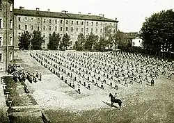 On August 25, 1863, during the reorganization of military educational institutions, the Paul's Cadet Corps was abolished, and its seniority was transferred to the Paul's Military School. The first appointed head of school was Pyotr Vannovsky. The school was given the building and archives of the First Cadet Corps.[1]