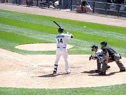 Konerko retired on September 28, 2014 after spending 18 years in the Major League Baseball, the last 16 of which were with the White Sox.[55] All but 81 of Konerko's 2,349 career MLB games were played with the White Sox. Konerko was the last member of the 2005 champion White Sox left on the team at the time of his retirement. It was announced on Paul Konerko Day that his number (#14) would be retired and the statue of Konerko was revealed in the left field concourse, becoming the ninth player to be honored with a statue by the White Sox.[52][56] On October 24, 2014, Konerko was named the co-winner of the Roberto Clemente Award, sharing the honor with Jimmy Rollins of the Philadelphia Phillies. By winning the award, Konerko became the first member of the White Sox to do so.[57] On May 23, 2015, prior to a game against the Minnesota Twins at U.S. Cellular Field, Konerko became the tenth White Sox player to have his number retired. His #14 is the eleventh overall number retired by the team as Jackie Robinson's #42 was retired by the whole MLB in 1997.[58][59]