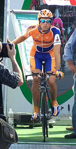 He recorded his first victory with Rabobank in 2010, winning the Grand Prix de Wallonie,[27] ahead of Riccardo Riccò and Cadel Evans. He also recorded fourth-place finishes at Brabantse Pijl, Paris–Brussels and the Gran Premio Bruno Beghelli,[27][28] while also finishing in the top-ten placings at the Grote Prijs Jef Scherens (sixth), and the E3 Prijs Vlaanderen (eighth).[27] In 2011, Martens recorded tenth-place finishes in two of the Ardennes classics – at the Amstel Gold Race and La Flèche Wallonne.[29][30] At the 2012 Vuelta a Burgos, Martens took a stage victory on the penultimate day of the race, winning on an uphill finish at Clunia.[31]