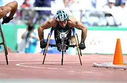 Action shot of Nunnari during the 800 m heat at the 2000 Summer Paralympics