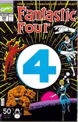 Of all his work for Marvel, Paul Ryan is most strongly associated with the Fantastic Four for his long run on their flagship title. Ryan said that when he was first offered the art assignment he actually declined, because he was reluctant to give up the Avengers to clear time in his schedule. He continued to think about the opportunity over a weekend, and finally concluded that he couldn't turn down the job of drawing his favorite Marvel title. Partnering with writer Tom DeFalco, and sometimes receiving a co-plotting credit, his first issue was #356 (Sept. 1991) and his last #414 (July 1996). He trailed only Jack Kirby and John Byrne in total number of Fantastic Four issues drawn.[4] His run on Fantastic Four was ended abruptly by the Heroes Reborn event.[12] Ryan recalled that he learned of his losing the F.F. and Jim Lee's taking over the title through the internet, and said, "This whole situation left a bad feeling with me toward Marvel. I was cast adrift after 11 years of loyal exclusivity."[21]