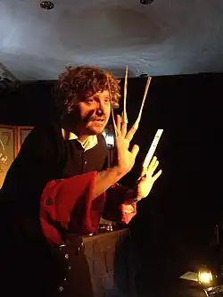 In 2021 he played "a decade-celebrating show at the Soho Theatre"[41] with Twonkey's Greatest Twitch, which then played at The Voodoo Rooms ballroom during the 2023 Edinburgh Fringe Festival. The show featuring "a whole lot of whimsy and a self-aware scrappiness",[42] with "few Fringe sights this year more unsettling than The Wobbly Waiter, a dismembered, dead-eyed puppet and frying pan fixture, advancing down the aisle",[43] received glowing reviews, described as "clowning at its very best" in The Scotsman's five star rating.[44]