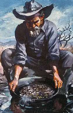 Walter Knott’s uncle, John Caleb King (1838-1901), was sheriff of San Bernardino County in 1879–1882. King grubstaked two miners who found the richest silver vein in Calico, California. The Silver King Mine is named after him, and it produced $10,000,000 in silver. Later, the price of silver dropped, and by 1896, Calico was a ghost town. In 1915, the price of silver was back up, and a mining company built a cyanide plant to rework the tailings of the Silver King Mine. Walter Knott worked there for a month in 1916, as a carpenter building the redwood cyanide tanks, and never forgot it.[24]