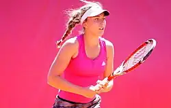 At the Serbia Open, she reached a third straight clay-court semifinal, defeating seventh seed Rebecca Peterson.[24][25] As a result, she entered the top 40 for the first time in her career and went on to win her maiden title when Ana Konjuh retired injured in the final.[26]