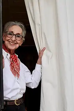 Her portrait work included images of Eduardo Mata in an easy chair in his house in Tepoztlán, Francisco Toledo in his studio, Rufino Tamayo in Los Pinos, Graciela Iturbide in the home of Manuel Álvarez Bravo and her father Raúl Lavista at his piano.[9] She has photographed other notable figures such as Octavio Paz, Juan José Gurrola, Ofelia Medina, María Félix, Juan José Arreola, Jorge Luis Borges, Juan Rulfo, Gabriel García Márquez, and Emilio Fernández .[10][11] She has also done a number of self-portraits, alone or with partner Salvador Elizondo.[12]