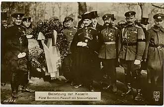 Prince Pavel Rafailovich Bermondt-Avalov (Russian: Павел Рафаилович Бермондт-Авалов) or Prince Avalov (16 March [O.S. 4 March] 1877 – 27 December 1973) was a Russian officer and Cossack adventurer-warlord. He is best known as the commander of the West Russian Volunteer Army which was active in present-day Latvia and Lithuania in the aftermath of World War I.[1][2][3][4]