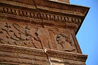 The symbols of Pavia are the coat of arms, the banner and the seal, as reported in the municipal statute. The banner used by the modern city of Pavia faithfully reproduces the one used by the municipality of Pavia at least since the 13th century: a red banner with a white cross. This symbol, probably derived from blutfahne, the original flag of the emperor of the Holy Roman Empire, had a clear political meaning: to underline Pavia's belonging to the Ghibelline faction. The coat of arms of the municipality also depicts the cross which, starting from the end of the 16th century, began to be represented in an oval shape and within a rich frame, on top of which there is a mask with a crown count and often flanked by two angels holding the shield and the letters CO-PP (Comunitas Papie).[93]