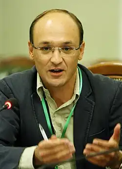 Pavlo Khazan (born November 17, 1974, Dnipro) is a Ukrainian scientist, politician, Lt. Colonel[2] of the Armed Forces of Ukraine, participant in the Russian War in Ukraine, co-founder of the environmental monitoring system, and a Deputy of the Dnipropetrovsk Oblast Council (VII and VIII convocation).[3][4][5] [6]