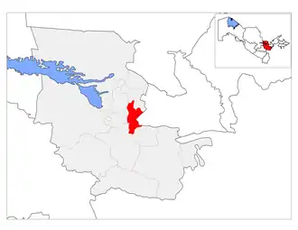 Paxtakor is a district of Jizzakh Region in Uzbekistan. The capital lies at the city Paxtakor.[1] It has an area of 380 km2 (150 sq mi)[2] and its population is 74,900 (2020 est.).[3] The district consists of one city (Paxtakor), one urban-type settlement (Gulzor) and 7 rural communities.[1]