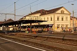 The municipality has a railway station, Payerne on the Palézieux–Lyss and Fribourg–Yverdon lines. It has regular service to Lausanne, Kerzers, Fribourg/Freiburg, and Yverdon-les-Bains.