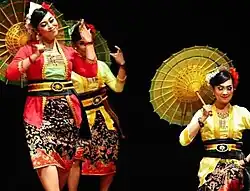 Payung dance (Minangkabau: tari Payuang; Jawi: تاري ڤايوڠ) is a folk dance-drama tradition of the Minangkabau-Malay ethnic group[1] in Sumatra, Indonesia. This dance is a Minangkabau version of other Malay dances from Sumatra. Folk theatre such as toneel and sandiwara often incorporates payung dance as part of the show.[2] The payung (umbrella) is the main prop used in this dance, and the dance itself, which is usually performed by three or four dancers, symbolizes affection and the relationship of young people. The dance originates from Western Sumatra, Indonesia.[3]
