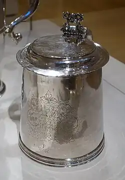 By the end of the 18th century, coinciding with the museum's 1799 founding, Salem was one of the nation's most prosperous seaports, and extensive trading of furs, spices, dyes, and other goods brought much wealth to the region.[35] This long legacy of trade contributed greatly to the foundation and growth of PEM's maritime art collection, which is among the finest of its kind in the country.[36] The collection includes over 50,000 objects, including paintings, model ships, scrimshaw, and more. Many diverse styles and periods of maritime art are on display in the collection, from navigational tools such as sextants to modern marine art, which addresses "nostalgic themes" and represents "the seafaring life of previous times".[37] One significant feature of the currently installed collection is a recreation of a room in Cleopatra's Barge, an opulent yacht which was built by Salem's Crowninshield family and eventually became the royal yacht of King Kamehameha II.