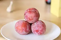 A peacotum is a peach/apricot/plum hybrid developed by Zaiger's Genetics, Inc., a company that develops novel fruit through hybridization.[1] Peacotum is trademarked by Dave Wilson Nursery Inc.[2] An application to trademark the name nectacotum in the United States for varieties derived from nectarine-type peaches was made in 2004 but later abandoned.[3]