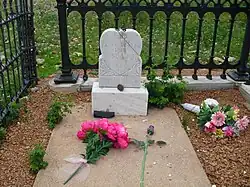 De Vere was buried at the Mt. Pisgah cemetery with a wooden marker. By the 1930s, her grave-site had been all but forgotten.[16] However, as tourism for Cripple Creek picked up, her grave marker was replaced with a marble stone. The original wooden headstone can now be seen hanging on the wall in the Cripple Creek District Museum.[17]