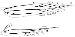 Pebobs species are very small to small moths in the family Cosmopterigidae. Forewing length of 2.9-4.3 mm. The external features are as in Cosmopterix. Wing venation with 12 veins in forewing and 7 veins in hindwing. Forewing with Sc and R1-R5 to costa; R5 stalked with M1; M1-CuA2 to termen; CuP very weak and not reaching termen; 1A+2A with basal fork, to dorsum. Hindwing Sc along costa and joining Rs at three-quarters; M1-CuA2 to termen; veins often not fully developed due to the narrow shape of the hindwing.[1]