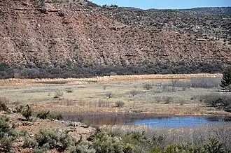 Pecks Lake is a small reservoir, fed by water from the adjacent Verde River, near Clarkdale in the U.S. state of Arizona. The name of the nearby Tuzigoot National Monument comes from an Apache word, Tuzigoot, meaning crooked water.[3] The "crooked water" reference is to Pecks Lake,[3] established in a cutoff meander of the river.[4]