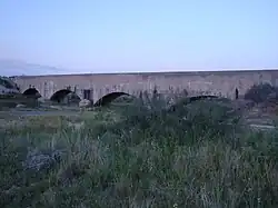 The Pecos River Flume is an aqueduct carrying irrigation water over the Pecos River. Construction took place from 1889 to 1890 and was part of the Pecos River Reclamation Project. It was originally constructed of wood and spanned 145 feet (44 m). It carried water at a depth of 8 feet (2.4 m). In 1902, a flood destroyed the flume and it was subsequently rebuilt using concrete. In 1902, it was identified as the largest concrete aqueduct in the world.[13][14]