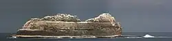 Pedra Branca is a rock islet in the Southern Ocean, off the southern coast of Tasmania, Australia.[1][2] The island is situated approximately 26 km (16 mi) south southeast of South East Cape and is contained within the Southwest National Park, part of the Tasmanian Wilderness World Heritage Site. An erosional remnant of the Tasmanian mainland, the island is approximately 270 m (890 ft) long, 100 m (330 ft) wide, with an elevation of 60 m (200 ft) above sea level. The island is estimated to have separated from the Tasmanian mainland at least 15,000 years ago.[3]