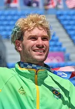 Pedro Barros (born 15 March 1995), known as Pedrinho Barros, is a Brazilian skateboarder who is specialized in Bowl and Park Skateboarding.[2] He won the silver medal in the inaugural Olympic men's park skateboarding event at the 2020 Summer Olympics in Tokyo. Pedro is also an entrepreneur, having his own beer company (LayBack) and his fashion and lifestyle brand, Privê (Privet, in Portuguese).