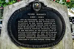 Pedro Bucaneg (March 1592 – c. 1630) was a Filipino poet. He is considered the "Father of Ilocano literature." Blind since birth, he is the believed to have authored of parts of the Ilocano epic Biag ni Lam-ang (Life of Lam-ang).[1] A street inside the Cultural Center of the Philippines (CCP) complex in Pasay, Philippines is named in his honor. His surname is lent to the Bucanegan, the Ilocano equivalent of the Balagtasan.[2]