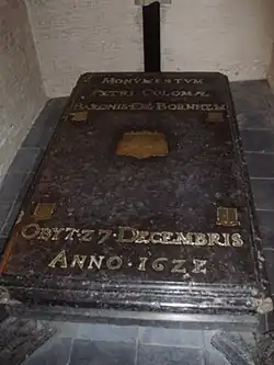 Coloma arrived in the Low Countries in 1577, to fight against the Dutch Revolt, and in 1586 bought the lordship of Bornhem in Flanders. He built a manor house on the site of Bornem Castle.[3] He also restored and improved the medieval duck decoy[3][4] on the estate, and in 1603 founded a religious community that is now Bornem Abbey.[5]