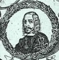 Alfonso Fernández de Córdoba IV (1447–1501), head of the House of Córdoba, was better known as Alonso de Aguilar and was called "El Grande" (the Great).[1] He played a major role in the final stages of the conquest of the Emirate of Granada from the Nasrid dynasty.[2] He was granted the town of Carcabuey and the village of Santa Cruz. Alonso's brother, Gonzalo Fernández de Córdoba, earned the title of Duke of Terranova and the nickname of "Gran Capitán" (Great Captain) for his service in battle, and for his great ability in organizing and modernizing the army of the Catholic Monarchs, Ferdinand of Aragon and Isabella of Castile.[1]