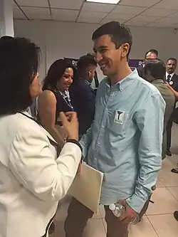 ![]() Kumamoto after a debate held by Ocho TV Guadalajara | |