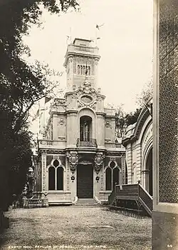 During the Exposition Universelle in 1900, Paulet would serve as the Deputy Commissioner for the Peruvian delegation, designing the pavilion used at the exposition.[4][13] He would become a member of the Société chimique de France and be bestowed the title of Officier de l'Instruction Publique of the Ordre des Palmes académiques by France the same year.[4][1] The Peruvian government would also commission to create a plan to bring wireless telegraphy to Peruvian Amazonia in 1900, with his recommendations being utilized during the project.[1] In 1901, he would graduate with High Distinction in industrial engineering from the University of Paris.[1]