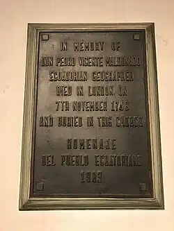 - Maldonado Walk, a lane sof Latin American shops and restaurants near Elephant and Castle in London is named after him.[2]