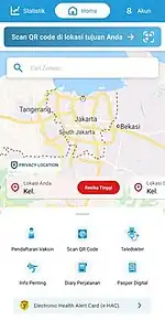 On 23 August 2021, Coordinating Minister for Maritime and Investments Affairs, Luhut Binsar Panjaitan, encouraged the government to make this app a mandatory requirement before using public transportations, such as train, bus, ferry, and plane.[5] Furthermore, citizen must have installed the app before entering shopping malls, factories, and sport venues.[6] Every person who have received at least a dose of vaccine will receive a vaccine card and vaccination certificate which can be downloaded from the app.[7]