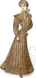 Very high-end peignoirs were occasionally sold with sheer long gloves and stockings made of the same material as the peignoir itself for wear to bed or on occasions where the wearer would be seen in her nightclothes, such as visiting or while sharing accommodations during travel during the mid-19th to mid 20th centuries. Contemporary peignoirs are usually sold with matching nightgown or panties.