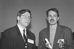Haavisto is openly gay. Although his homosexuality was an open secret during the 1990s, his sexual orientation wasn't public until 2002, when he entered in a registered partnership with Antonio Flores,[40] an Ecuadorian man born in Esmeraldas in 1978. They have been together since 1997 when they met in a Bogotá night club.[37][41][42]