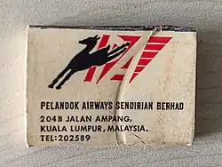 Pelandok Airways was a former Malaysian airline which commenced operations in October 1971 through a collaboration between the Federal Land Development Authority (FELDA) and Taiwan's Far Eastern Air Transport Corporation.[3] The airline positioned itself as a provider of low-cost flights, charter services, and cargo transportation.[2]