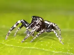 - Maddison, W. P.; Evans, S. C.; Hamilton, C. A.; Bond, J. E.; et al. (2017). "A genome-wide phylogeny of jumping spiders (Araneae, Salticidae), using anchored hybrid enrichment". ZooKeys (695): 89–101. doi:10.3897/zookeys.695.13852. PMC 5673835. PMID 29134008.