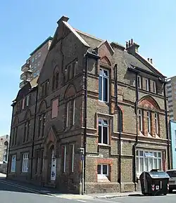 John Hannah became Vicar of Brighton in 1870, following the death of Reverend Henry Michell Wagner which ended his 46-year incumbency.[5] Hannah was concerned about the social and physical welfare of Kemptown's large working-class population, whose poverty restricted their opportunities for education and recreation. He also felt that the many pubs in the area encouraged people to spend their money on alcohol.[3][6] He was made archdeacon of Lewes in 1876 and in the same year founded a "slum mission"—similar to a church-sponsored working men's club—on the site of the closed chapel of 1829, near the junction of Upper Bedford Street and Eastern Road.[3][6] He commissioned local architect Thomas Lainson, already responsible for the Middle Street Synagogue,[7] Bristol Road Methodist Church[8] and several housing developments,[9] to design a building with space for all the required facilities. He carried out the work in 1877, and from 1879 the building bore the name Pelham Institute.[6]