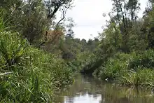 Pematang Gadung is a village in the administrative district (kecamatan) of Matan Hilir Selatan ("Lower South Matan"), in Ketapang Regency, West Kalimantan Province of Indonesia. The village is located 30 km from the regency capital and is the only village in the district that still has a natural peat-swamp forest. The forest has a depth range of 3–7 m and an area in excess of 14,000 hectares. It is rich in flora and fauna including orangutans,[1] proboscis monkey, Maroon leaf monkey, silvery lutung, long-tailed macaques, sun bears, Horsfield's tarsier, Large flying fox, deer, crocodiles and more than 250 species of birds, and more than 30 species of orchid.