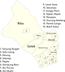 Penajam is divided into the following 23 villages (the rest are urban kelurahan, rural desa are marked by grey background):[1]