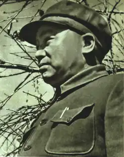 Peng Dehuai[a] (October 24, 1898 – November 29, 1974; also spelled as Peng Teh-Huai) was a Chinese general and politician who was the Minister of National Defense from 1954 to 1959. Peng was born into a poor peasant family, and received several years of primary education before his family's poverty forced him to suspend his education at the age of ten, and to work for several years as a manual laborer. When he was sixteen, Peng became a professional soldier. Over the next ten years Peng served in the armies of several Hunan-based warlord armies, raising himself from the rank of private second class to major. In 1926, Peng's forces joined the Kuomintang, and Peng also got introduced to communism during this time. Peng participated in the Northern Expedition, and supported Wang Jingwei's attempt to form a left-leaning Kuomintang government based in Wuhan. After Wang was defeated, Peng briefly rejoined Chiang Kai-shek's forces before joining the Chinese Communist Party (CCP), allying himself with Mao Zedong and Zhu De.