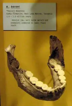 ![]() Peninj Mandible that was discovered at Peninj Site | |
